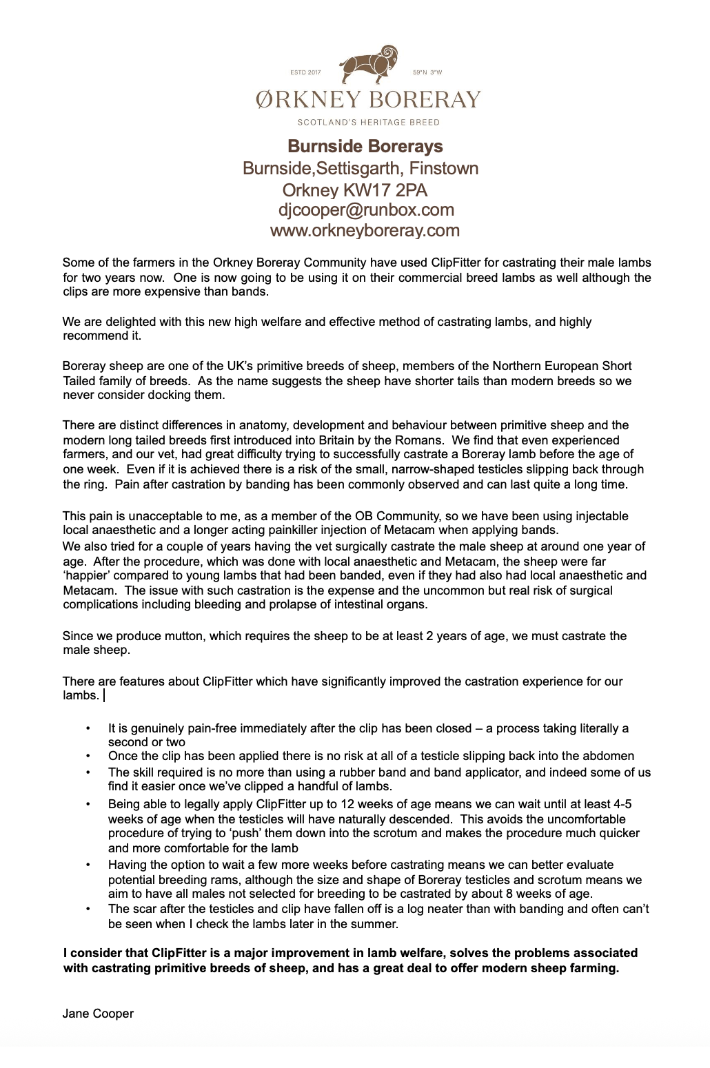 Orkney Boreray Breeder Jane Cooper kindly sent in this review of her own use of ClipFitter on her particular rare breed. We are all learning from ‘mistakes’, and Jane, like many other early adopters, has helpfully shared her use of bio-clips on lambs that were probably beyond the limit for the organic material we use for bio-clip moulding. The choice for everyone in the future will be to use bio clips earlier or plastic clips later.