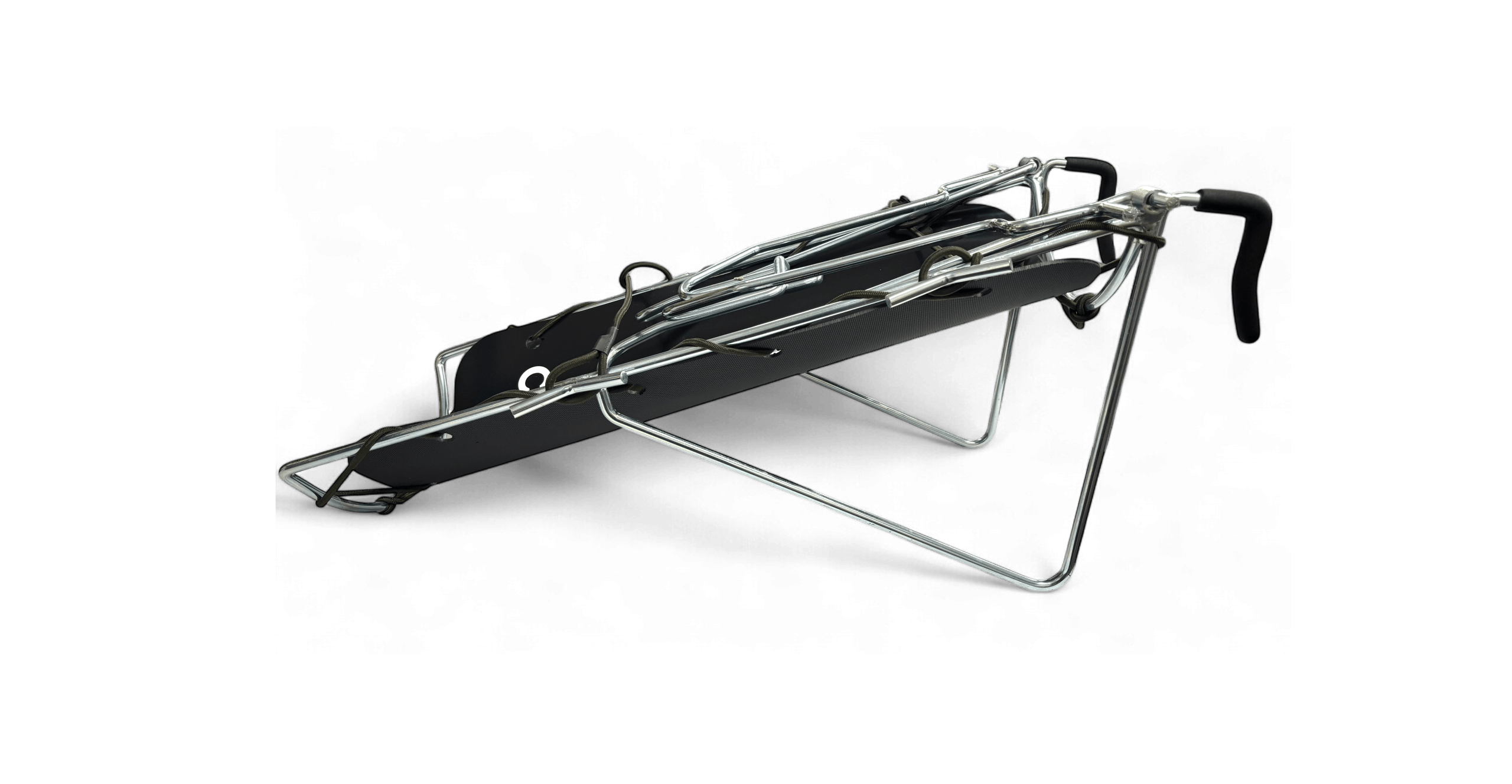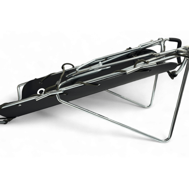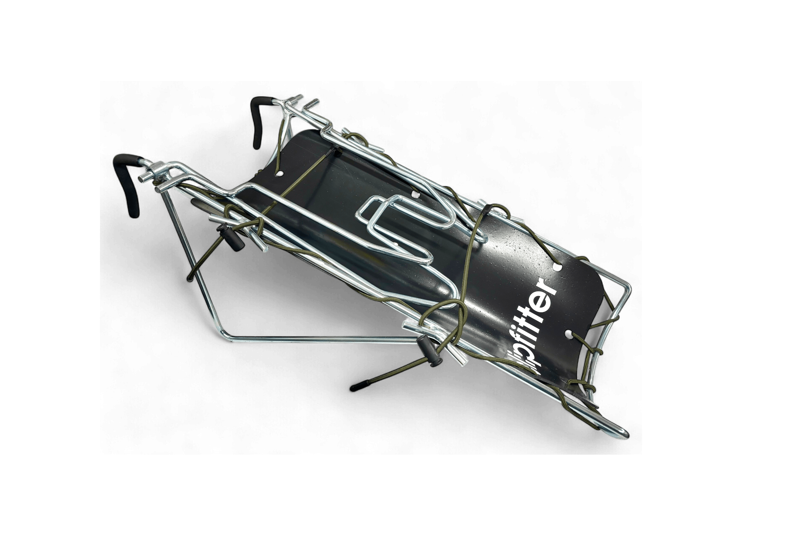 A cradle calms the lamb, holding it firmly but gently to allow you to work hands free. It hooks onto your lambing pens and weighs in at 4 kgs only ! Add a piece of wood or other material at the back using the two screw holes to adjust the height of the front to your preferred level. The top arm swings up and away to release or load, or can be held in position with a bungee cord. There is a great amount of flexibility and self adjustment allowing lambs of most sizes to fit. A second bungee cord can be used to control a wriggler! Buy them from selected merchants too.