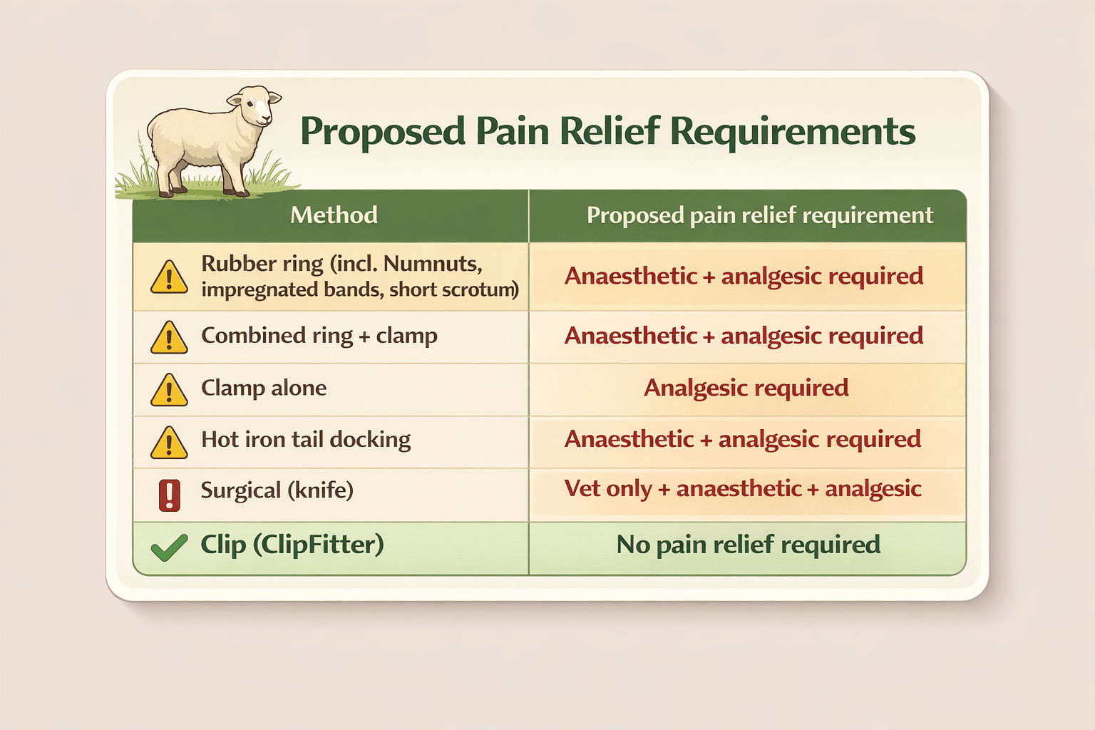 - permitting rubber ring castration and tail docking up to three months with pain relief